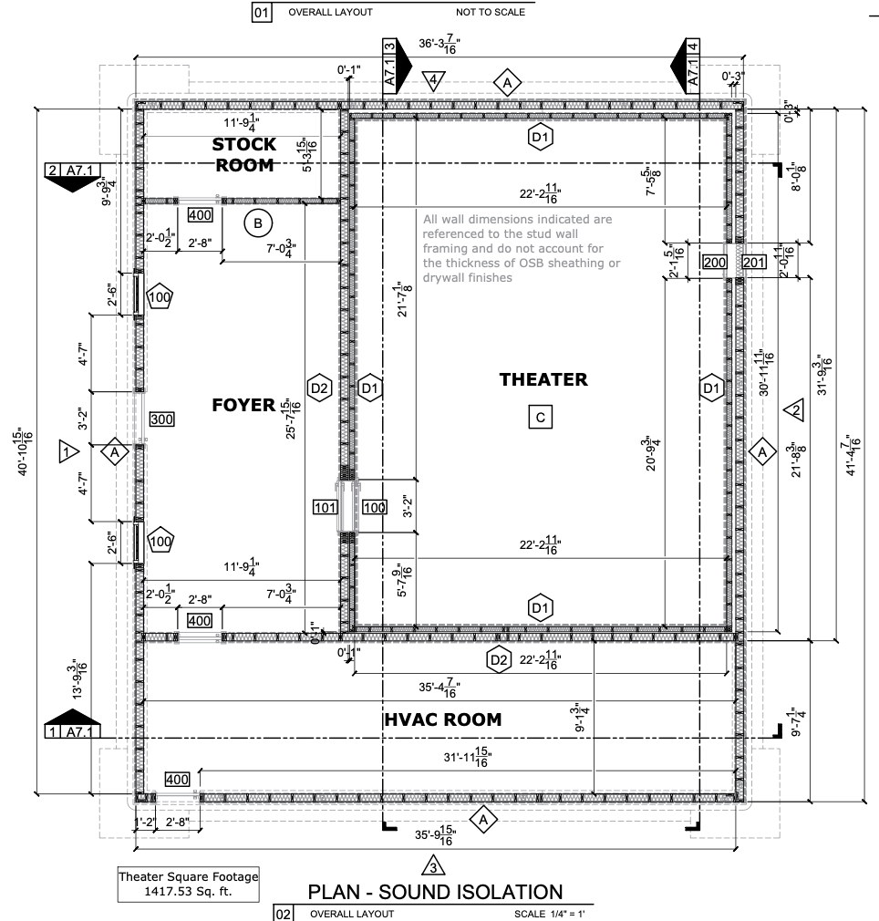 These are construction-ready documents that define the full sound isolation system — so your contractor knows exactly what to build, in what order, and why.